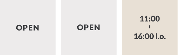 LUNCH / 11:30~14:00(l.o.)14:30 Close